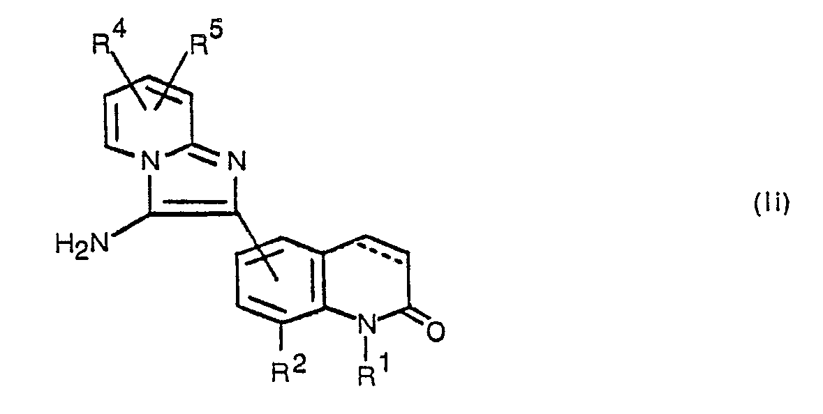 - FUEGAYJBDUCQJE-UHFFFAOYSA-N 5-(3-ethylimidazo[1,2-a]pyridin-2-yl)-8-methoxy-1h-quinolin-2-one Chemical compound N1C(=O)C=CC2=C1C(OC)=CC=C2C1=C(CC)N2C=CC=CC2=N1 FUEGAYJBDUCQJE-UHFFFAOYSA-N 0.000 claims description 2