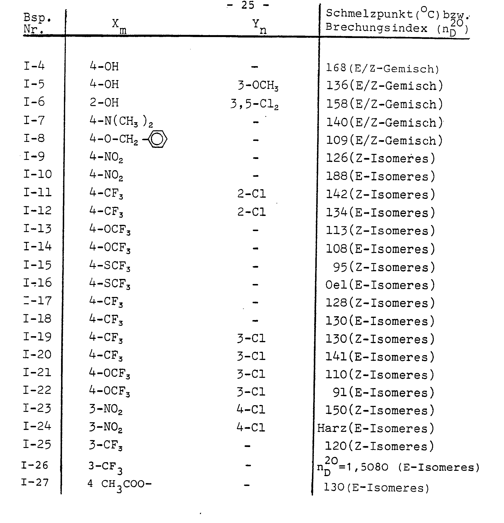 - X preferably represents haloalkyl, haloalkoxy and haloalkylthio, each having 1 to 2 carbon atoms and up to 5 identical or different halogen atoms, such as in particular fluorine and chlorine atoms; Alkylthio of 1 to 4 carbon atoms; Nitro; Hydroxy; Dialkylamino having 1 to 4 carbon atoms in each alkyl part; Alkylcarbonyloxy having 1 to 4 carbon atoms in the alkyl part; as well as for benzyloxy optionally substituted in the phenyl part, the following may preferably be mentioned as substituents: fluorine, chlorine, bromine and alkyl having 1 to 2 carbon atoms.
