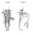 - the injector 49 is then pushed in to elastically deform and extend the coupling piece 45, thereby driving the second cylinder body 46 deep into the first cylinder body 32, the first rugged ring 55 on the outer peripheral surface of the lower end portion of the. second cylinder body 46 is fitted in the second rugged ring 56 on the taper surface of the taper portion 31 of the first cylinder body 32 to cut off thoroughly the communication between the channel 27 and the space portion 47. Accordingly, if the liquid is caused to run out of the injector 49 in this state, then it will securely be introduced into the body cavity through the channel 27 without being affected by the sucking force from the suction tube 35.