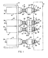 - Thrust units 220, 222, 224, 226 are formed in pairs and are located at the diametrically opposed flange portions 142, 144 to define a relatively small transverse distance which is used for controlling the radial movement of assembly F.