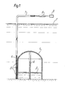 - an oil storage tank 1 is located on the sea bed at some distance below sea level 2. Oil is stored in the upper half of the tank and is supported on sea-water, the oil-water interface being indicated by the line 3., (For convenience, inlets and outlets in the tank for oil and water have been omitted from the drawing).
