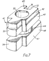 - the spigot member 40 has a central cylindrical waist 44 of diameter slightly less than the width 45 ( Figure 5) of the top aperture 6 and the plate 35, and a bottom portion 47 of generally similar profile to the head 41 but projecting on one side 48 further than the head 41.