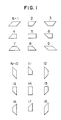 - Figs. 1 to 6 are views to illustrate the principle of operation of an apparatus according to the invention, wherein Fig. 1 shows a variety of input graphic patterns and Figs. 2 to 6 illustrate processes of decomposition effected at cascaded unit circuit stages in succession;