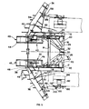 - First and second arms 22 and 24 are independently rotatably mounted onto axle 16 and extend forwardly thereof in generally parallel planes. Arms 22 and 24 are strengthened by reinforcing elements 26 and 28 respectively which are fixed at one end thereof to the respective arms and are rotatably mounted by means of clamps 30 and 32 onto axle 16.