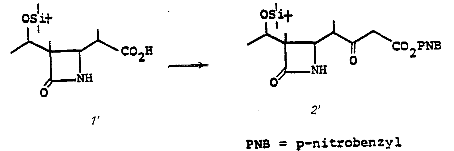 - the addition 3 to 4 is accomplished by treating 3 with 1,1'-carbonyldiimidazole, or the like, in a solvent such as tetrahydrofuran (THF), dimethoxyethane, acetonitrile or the like, at a temperature of from 0 to 70°C, followed by the addition of 1.1 to 3.0 equivalent of (R O 2 CCH 2 CO 2 ) 2 Mg, at a temperature of from 0 to 70°C for from 1 to 48 hours.