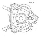 - the valve plate 22 has parallel, accurately flat opposite surfaces to form a leak-tight assembly with the valve members 20, 21, when all three valve members are urged into cooperating facial contact with one another by upward biasing spring means described later.