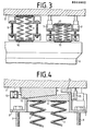 - Damit das Gewicht der Fundamentplatte 2 nicht unmittelbar auf den Stempeln der Stelleinrichtungen 7 aufliegt, ist eine feste Verbindung zwischen den Federkörpern 3 und der Fundamentplatte 2 über den ganzen Stellbereich mittels einer verstellbaren Keilverbindung 11, 12 vorgesehen, wie aus Fig. 4 ersichtlich ist. Eine die Federkörperschale 8 oben abschließende, keilförmig ausgebildete Platte 11 dient als schiefe Ebene für einen Keil 12.