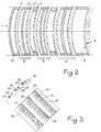 - the curved panel is made of a dielectric material and is provided with parallel grooves 25 for the wire-diodes, these grooves being wide enough to contain the diodes 26 connected by sections of wire 27.