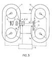 - the apparatus firstly comprises a projection member (left part of FIG. 5) which conventionally comprises a film-passing device involving a supply reel 1-take-up reel assembly 2 actuated from a possibly stepping motor, at frame rate, frame by frame, controllable from a programmable control system 3.