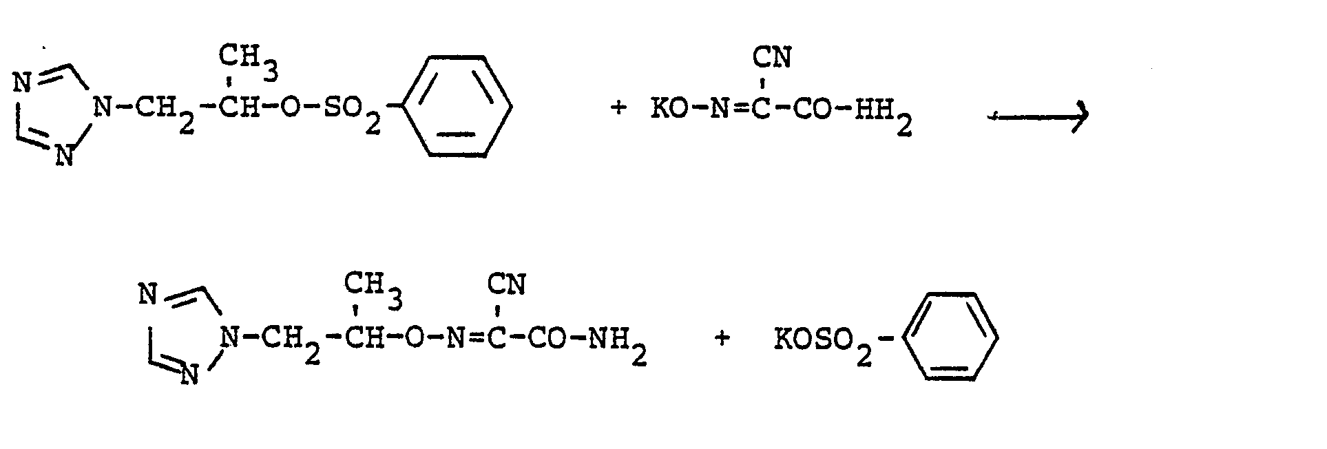 - the N-alkylazole (II) can also be added to a mixture of diluent and alkali metal, alkaline earth metal or ammonium salt of the 2-cyano-2-oximino-acetamide derivative (III). If an N-alkylazole salt is used, either a molar amount of a tertiary amine is added either before the azole compound is added or simultaneously with it.