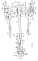 - Each wheel hub 64 is pivotally mounted upon a respective wheel mount 21, 22 each of which comprises a yoke 76 which includes an outer member 78 and a pair of fingers 80, 82 extending axially into the bore formed in the hub and pivotally attached to the hub by means of studs 84 through inner wall 83 to permit pivotal movement of the wheel about a vertical axis 86 which passes through the pivot point 88 of universal joint 74.