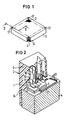 - the connector part 3 has in its base 6 in the area of the first recess 1 a plurality of grid-like, rectangular openings 2 for contact elements 9, 18, and forms with the collar created by the recess 1, 14 an enclosure of the printed circuit board.