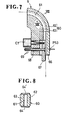 - the presser pad 38 has an upper portion vertically slidable in the hole 36 and a projection 38a extending downstream and slidably disposed in a guide groove 37 defined in the upper cutter blade 30 below the hole 36, the upper portion having a blind hole 38b in which a compression spring 39 is mounted.