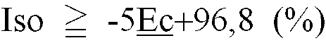 - the ethylene content (Ec) should be within the above-specified range in relation to the isotactic value (iso) [characteristic (B)] of the copolymer to be described. If the ethylene content (Ec) is lower than the specified limit, it is difficult to provide a propylene copolymer having satisfactory stretchability in combination with other desirable properties. On the other hand, if the ethylene content (Ec) is higher than the specified limit, it is difficult to provide a propylene copolymer having satisfactory rigidity in combination with other desirable properties, and the resulting copolymer gives a shaped article having low stiffness. The heat resistance of the resulting copolymer is also unsatisfactory.