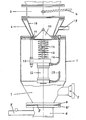 - the opening and closing mechanism is held by a three-point suspension 15. 16 is the compressed air supply line during the opening process of the cone closure and 17 is the compressed air supply line during the closing process, which leads out of the vessel conveyor 1 at a position not shown.