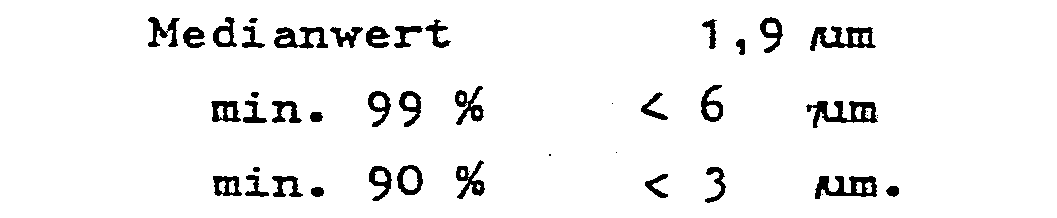 - the particle size and its distribution are determined in a particle measuring device, e.g. after suspension in isopropanol.