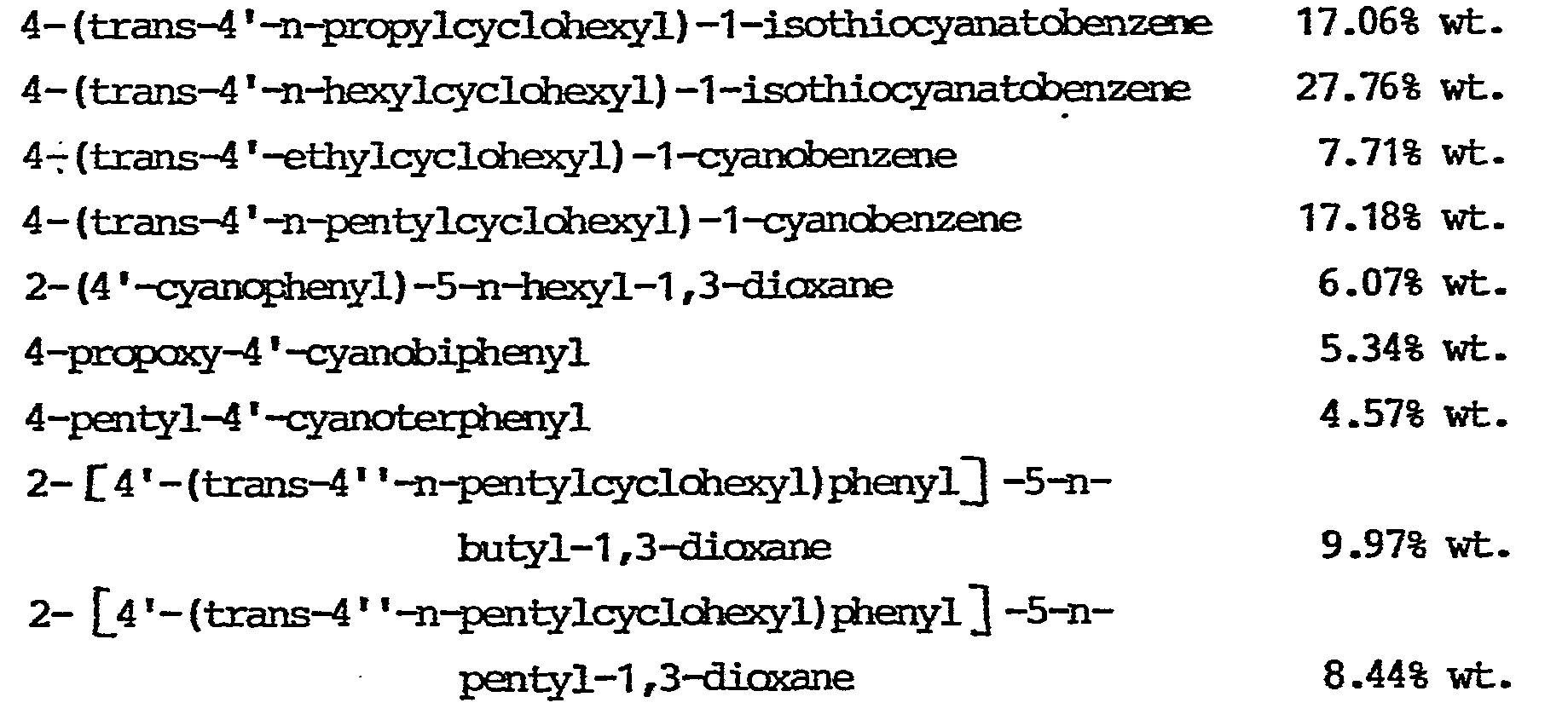 | EP0170082A3 (en) * | 1984-07-02 | 1988-07-20 | Wojskowa Akademia Techniczna im. Jaroslawa Dabrowskiego | Liquid crystalline isothiocyanates with a dioxane ring and liquid crystalline admixtures containing the same |