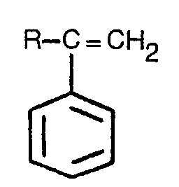 - the benzene ring may be ring substituted with functional groups, such as nitro, alkoxy, acyl, carboxyl, sulpho, hydroxyl or halo and the formula should be understood to include such substituents unless otherwise stated. From 1 to 5 benzene substituents may be present, preferably, the substituents are a single alkyl group such as a methyl or t-butyl group. Most preferred of these compounds are styrene, alpha-methyl styrene, para- methyl styrene and para-t-butyl styrene.