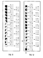 - Nur in wenigen Ausnahmefällen muß eine Taste nacheinander zweimal betätigt werden, etwa bei dem Zeichen 62 in Fig. 12, weil dort eine eindeutige Markierung durch drei Eckpunkte nicht ohne weiteres möglich ist. Trotzdem kann die Bedienungsperson anhand der "unmittelbaren" Tabelle gemäß Fig. 12 schneller als beim Stand der Technik erkennen, wie die Zuordnung erfolgt und welche Tasten er betätigen muß.