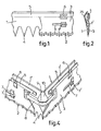 - the flanks of the knife teeth 2 form a smaller angle with the connecting line of their tooth tips than the angle enclosed by the flanks of the retaining teeth 4 of the support member 1 with the connecting line of their tooth tips.