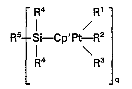 - Cp represents cyclopentadienyl group that is eta-bonded to the platinum atom, the cyclopentadienyl group being unsubstituted or substituted by one or more groups that do not interfere in a hydrosilation reaction, and