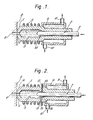 - 7 denotes a bar of moulding or casting material arranged to be forced through the passage 2 in which it is a sliding fit into the heating chamber 3.