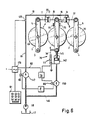 - the rocker 68 can also be arranged on the top of the levers 6, 10 if the units 7, 8 engage on the underside, or a bearing that is independent of the lever 6 or frame part (if the roller 2 is to be stationary) have, but the joint use of the bearing 4 is easier on the one hand, on the other hand, it has proven to be advantageous if the length of the rocker 68 corresponds to the distance to the adjacent roller, that is to say approximately the diameter of a roller. An effect is obtained with simpler means, as has already been described in FR-A-1 273 350.