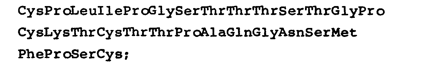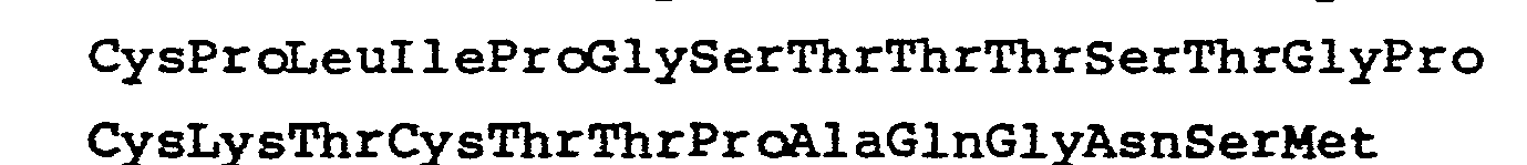 - Preferred sequences of synthetic polypeptides, for use in a vaccine also include amino acid residue sequences (or portions thereof) of T cell determinant portions of HBsAg that induce T cell to proliferate (also referred to herein as T cell-proliferating portions) taken from left to right and in the direction from the amino-terminus to the carboxy-terminus including: and