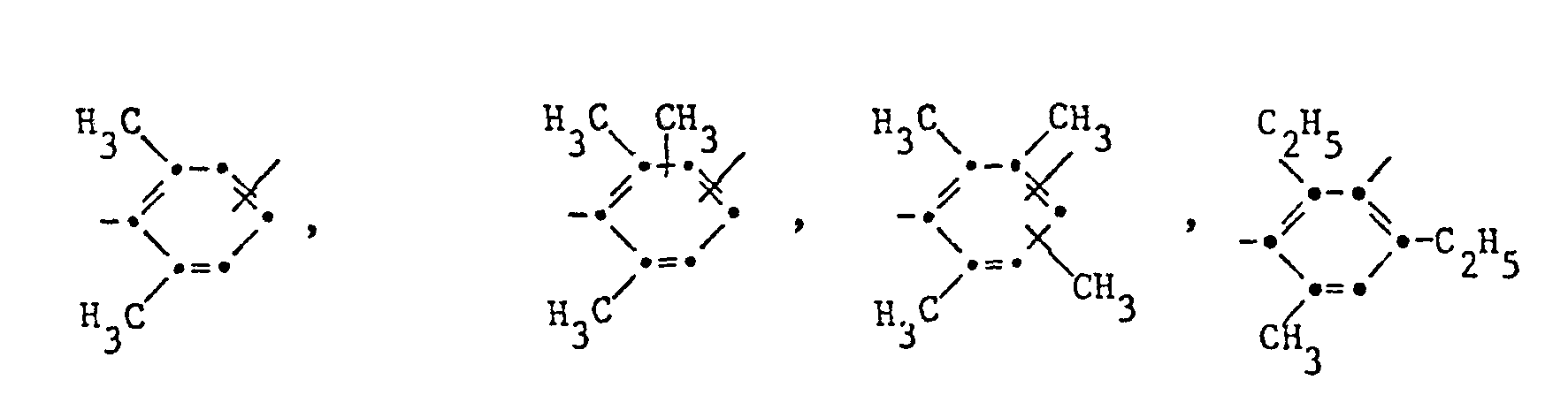 - a preferred subgroup are such aromatic radicals of the formulas or where R 7 in the case of mono substitution is alkyl with 1 to 6 C atoms and the other R 7 are hydrogen, and in the case of di, tri or tetra substitution two R 7 alkyl with 1 to 6 C atoms and the other R 7 are a hydrogen atom or alkyl with 1 to 6 C atoms or, in the case of di, tri or tetra substitution, two vicinal R 7 in the phenyl ring for trimethylene or tetramethylene and the other R 7 for a hydrogen atom or alkyl with 1 to 6 C Atoms, Y represents O, S, NH, CO or CH 2 , R 8 represents a hydrogen atom or alkyl having 1 to 5 C atoms and R 9 represents alkyl having 1 to 5 C atoms, and Z represents a direct bond, 0 , S, SO, SO 2 CO, , NR f , CONH, NH, R 10 SiR 11 , R 10 OSi