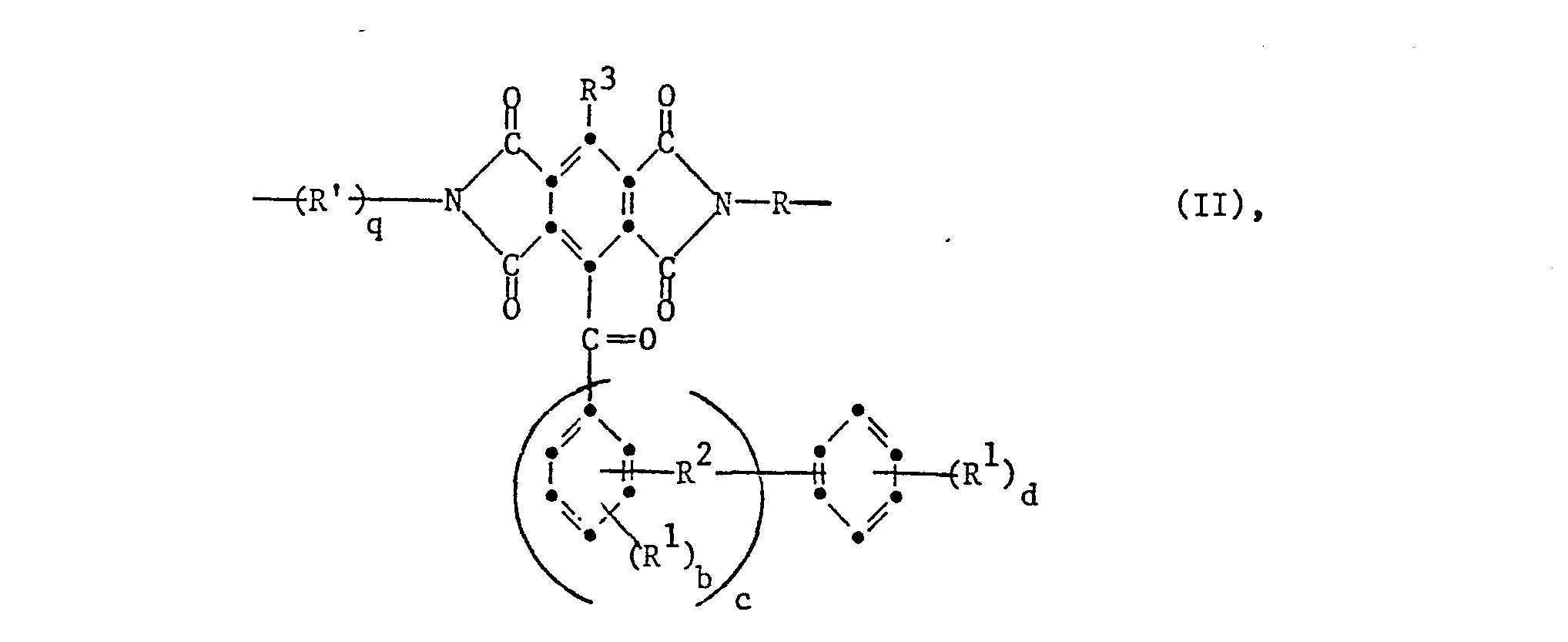 - Copolyimides according to the invention contain at least two different structural elements, the number of different structural elements essentially depending on the desired properties and the field of application. They preferably contain 2 to 4 different structural elements, the structural elements being able to differ only in the radical R of the formulas 1 and / or II. In a particularly preferred Aus The form of such copolyimides contains structural elements of orthodisubstituted phenylenes, especially 1,3-phenylenes.