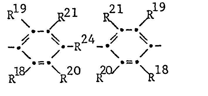 - Another group of diamine residues are those of the formula wherein the free bond is bound in the 4'- or 5'-position and the other in the 3-, 5-, and preferably 4-position, R 18 and R 19 and / or R 20 and R 21 are in the ortho positions of the free bond and for alkyl or alkoxy with 1 to 12 carbon atoms or alkoxyalkyl with 2 to 12 carbon atoms.