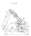 - This comprises a spindle 43, to be driven in a rotary manner, a piece 44 mounted theron, two pairs of pins 45 permanently mounted on the piece 44 and two pairs of pivotable, hooked-shaped pins 46 mounted on the piece 44.