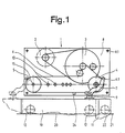 - An electric motor 2 drives a toothed belt 6 which is deflected about a fixed deflection roller 4 and about a reversible deflection roller 5 via a belt transmission 3.
