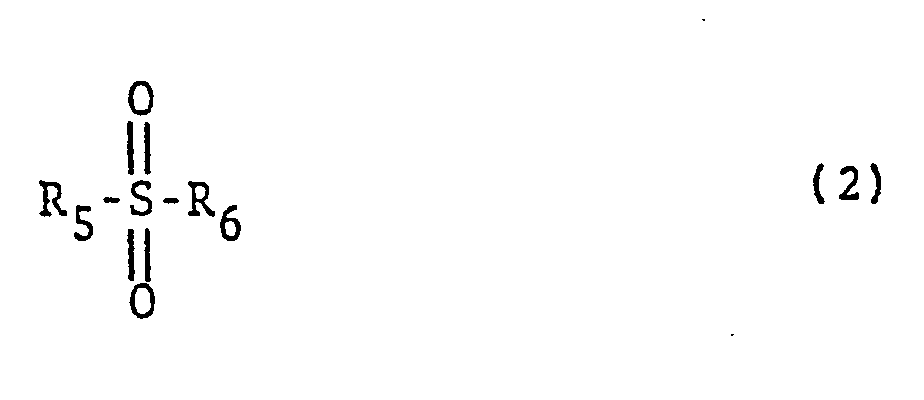 - the sulfone compound (e) is represented by the general formula (2): wherein R 5 and R 61 the same or different, are substituted or unsubstituted alkyl groups having 1 to 20 carbon atoms, substituted or unsubstituted cycloalkyl groups having 3 to 8 carbon atoms, substituted or unsubstituted cycloalkenyl groups having 4 to 12 carbon atoms, substituted or unsubstituted aralkyl groups having 7 to 20 carbon atoms and substituted or unsubstituted phenyl groups.