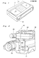 - the unit K further includes a cassette holder 12 for loading the video tape cassette 1 thereinto, an electronic viewfinder 14, a microphone 15, a battery mounting portion 16 for mounting a battery pack thereon, and a pivotal protective cover 17 for covering a mode changeover operating portion.