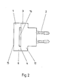 - the electrical device provided for vaporizing insecticidal active substance platelets has a housing with a front cap 1 and a rear side cap 3 provided with contact pins 2 for insertion into a socket. Front cap 1 and rear side cap 3 are coupled along the dashed connecting line 4.