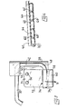 - one of the ends 34 of the bucket support arm 32 is rotatably mounted about a pivot axis in a bearing 36 which extends parallel to the axis of rotation of the spindle 16 and which is carried by a flange 38 integral in rotation with this spindle, while the bucket 30 is rigidly fixed on the other end 40 of the arm 32, said rotary end 34 carrying a finger 42 oriented transversely to the pivot axis and extending between two spaced stops 44 and 46 which are integral with the flange 38 and with which finger 42 cooperates to limit pivoting.