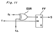 - the output pulses of the frequency divider 10 are fed to a modulation circuit 11 as a signal fc to be modulated.