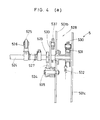 - the lever 143 is rotated in the counterclockwise direction as shown in Fig. 6, and as a result, the drive lever 140 also rotates in the counterclockwise direction before eventually being set to the predetermined rotating position to activate operation of the operation lever 521 of the plate feeding/discharging unit 5.