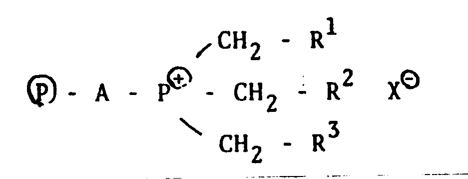 - ® represents an organic macromolecule and A represents a bridging group between phosphorus and the organic macromolecule, in particular, a hydrocarbon biradical group of C, to C 20 which is not always required to be of a straight chain if bonding with phosphorus is effected through primary carbon, but can contain a side chain or cyclic structure or can be saturated.
