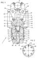 - the middle holding member 12 is guided non-rotatably in a recess 27 of the adjusting member 15 by means of a rectangular guide part 28.