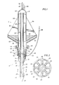 - Shoulder 26 formed above cone 22 faces upwardly and beams 28 are pivotally mounted thereto by suitable pivoting means 29 such as pins and brackets so that in their retracted position as shown in FIGURE 1 they have a diameter smaller than the outer diameter of shoulder 26 or they are within the shadow of cone 22.
