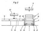 - Each device 5,6 also has a carrier 16 with two parking spaces 17, 18 for cassettes, the top of which is adapted to the conveying surface of the conveyor 10, and between a position shown by solid lines and a position indicated by dash-dotted lines back and forth, that means along the orbit 1, is displaceable.