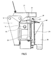 - Crankshaft 120 is attached to a lever 128, the free end of which is articulated to a coupling rod 127, the other end of which is articulated to the swivel arm 125 at a distance from its articulation point 124 on the telescopic support 107.