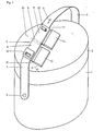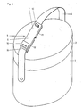 - Fig. 1 zeigt eine Tragetrommel 1 mit einem Stülpdeckel 2 und einem am Trommelumfang mit Hilfe von Nieten 3 befestigten Griffband 4. Während Tragetrommel 1 und Deckel 2 aus Pappe oder Karton bestehen können, soll das Griffband 4 im allgemeinen aus einem zugfesten Kunststoff hergestellt werden.