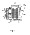 - the ventilation is ensured by two fans 21a and 21b arranged one above the other, which let the air flow between the horizontal fins 44.