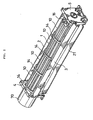 - Slot-like first sections to be fitted 41a, 41b, 41c, 41d which fixedly engage the left side fitting sections 20a, 21a, 22a, 30a of the bottom plate 2 and the housing 3 therewith, are formed on the erected wall 41 of the one end face frame 4, while the slot-like first sections to be fitted 51a, 51b, 51c, 51d, which fixedly engage the right side fitting sections 20'a, 21'a, 22'a, 30'a of the bottom plate 2 and the housing 3 therewith, are formed on the erected wall 51 of the other end face frame 5, these two groups of first sections to be fitted being opposed to one another.
