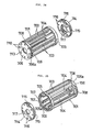 - Bearing members 19, 19 with step of a rubber or the like material are engaged respectively with the circular hole of the auxiliary end plate 15' and the circular hole 15c of the end plate 15 of the impeller 10 located on the opposite end at the time of attaching the auxiliary end plate 15', then a shaft 70a of the motor 70 is inserted with pressure in the center of one of the bearing members 19, 19 with step, while an impeller supporting shaft 71 is inserted in the center of the other.