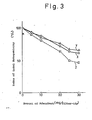 - a ( ⁇ ) , B (o) C( ⁇ ) and D(x) represent crystalline cellulose powders having particle sizes of 0.4 pm, 4 ⁇ m, 40 ⁇ m, and 100 ⁇ m, respectively, and a relationship between an amount in weight (g) of crystalline cellulose powder incorporated in 1 liter of expandable polymer (PVA) and a rate of removing mutagenic compounds is shown.
