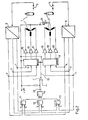 - control units 8 and 9 are followed by amplifiers 15 to 20 for each engine line, which are designed for the power adjustment for controlling the individual lines.